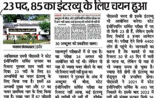 MPPSC : अगले आठ माह में 10 बड़ी परीक्षाओं के 3300 से ज्यादा पदों के इंटरव्यू करवाने की चुनौती , इन इंटरव्यू में लगभग 10 हजार अभ्यर्थी होंगे शामिल MP-PSC करवा सकता है कई...