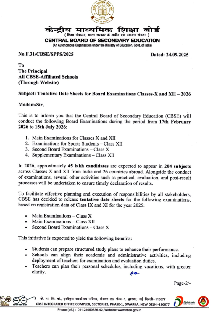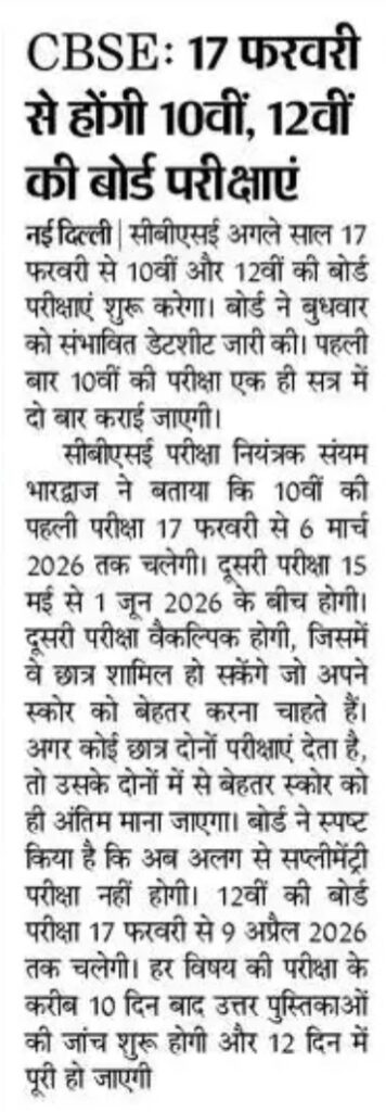 CBSE EXAM DATE : 10, 12th , पहली बार दसवीं की परीक्षा दो बार होगी