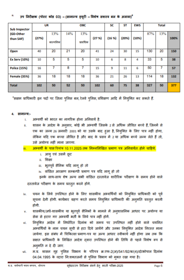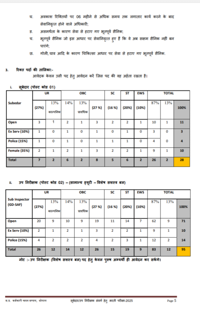 MP POLICE RECRUITMENT: सूबेदार और उपनिरीक्षक भर्ती