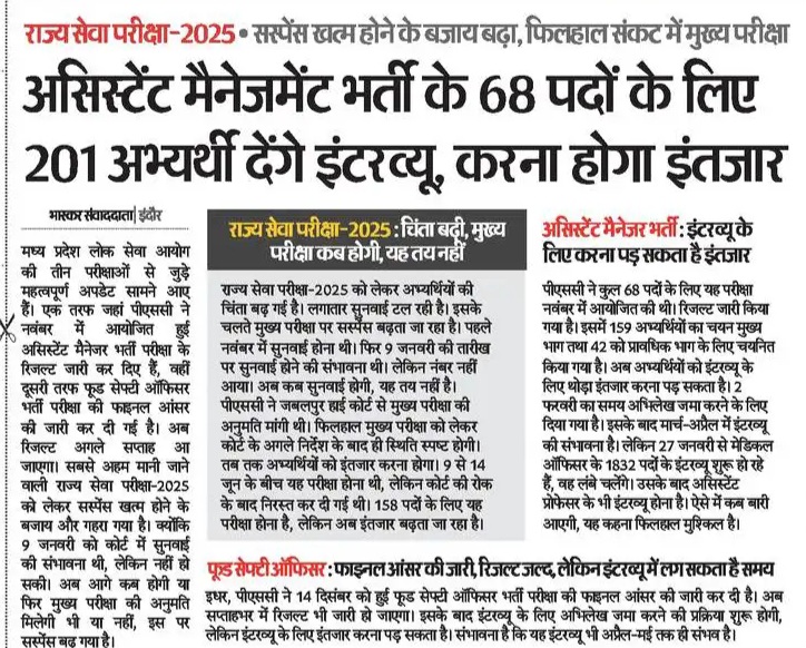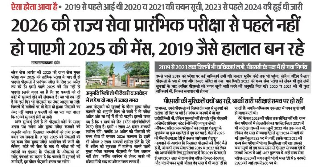 26 अप्रैल को होने जा रही राज्य सेवा प्रारंभिक परीक्षा -2026 से एमपी पीएससी थ्री लेयर सिक्योरिटी सिस्टम लागू करने जा रहा है। इसकी तैयारी शुरू हो गई है। इसके बाद सभी परीक्षाओं में यही सिस्टम लागू होगा। यूपीएससी इस सिस्टम को पहले ही लागू कर चुका है। लगभग उसी तर्ज पर पीएससी भी थ्री लेयर सिक्योरिटी सिस्टम लाने जा रहा है।