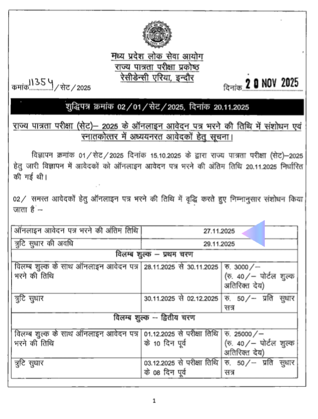 एमपी पीएससी • सेट आवेदन की तारीख अब 27 नवंबर तक बढ़ाई, राज्य सेवा 2025 पर सस्पेंस, मेडिकल एक्सपर्ट की एक और चयन सूची