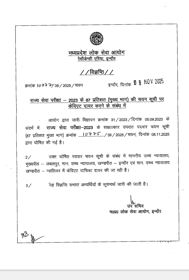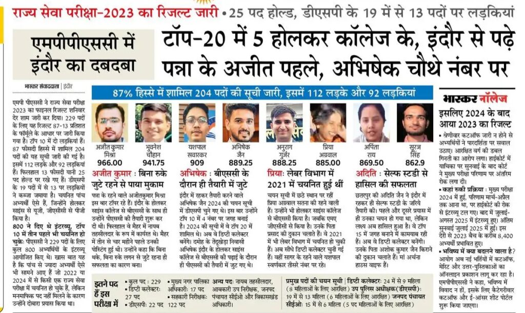 MPPSC : राज्य सेवा परीक्षा 2023 87% का अंतिम परिणाम घोषित