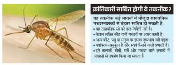 हाल ही में ‘नेचर माइक्रोबायोलॉजी’ नामक प्रतिष्ठित शोध पत्रिका में मच्छरों को समाप्त करने का एक अत्यंत रोचक और नया जैविक तरीका प्रकाशित हुआ है। वैज्ञानिकों ने ‘मेटा रिजियम’ नामक फफूंद (फंगस) को आनुवंशिक रूप से परिवर्तित करके बनाया है। यह एक एक मीठी गंध छोड़कर मच्छरों को अपनी ओर आकर्षित करे और फिर उन्हें संक्रमित करके मार दे।