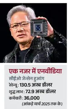 जीपीयू (GPU) तकनीक में विशेषज्ञता रखने वाली अग्रणी चिप निर्माता कंपनी ‘एनवीडिया’ (Nvidia) को नई ऊंचाई तब मिली, जब उसने आर्टिफिशियल इंटेलीजेंस (एआई) के क्षेत्र में कदम रखा। साल 2022 में जब ओपन एआई ने अपना ‘चैटजीपीटी’ आम लोगाें के लिए लॉन्च किया तो पूरी दुनिया का ध्यान एनवीडिया पर गया, क्योंकि इस तकनीक के पीछे चल रहा सुपरकंप्यूटर 10,000 NVIDIA जीपीयू से ही संचालित हो रहा था।