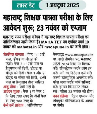 वैकेंसिस: 4128 सिपाही भर्ती|ट्रेनी इंजीनियर 866 पद |इंडियन ओवरसीज बैंक : अप्रेंटिस पदों पर भर्ती|महाराष्ट्र शिक्षक पात्रता परीक्षा के लिए आवेदन शुरू by Exam Guider · Published October 1, 2025 · Updated October 1, 2025 ■■■■